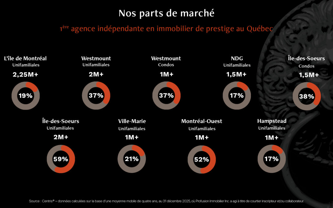 Source : Centris®, données calculées sur la base d’une moyenne mobile de quatre ans, au 31 décembre 2025, où Profusion Immobilier inc. a agi à titre de courtier inscripteur et/ou collaborateur.